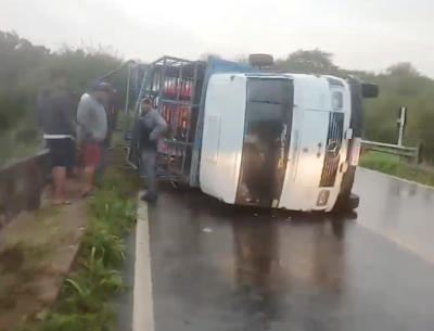 direção do caminhão boiadeiro e o cargueiro tombou, mas como o amigo estava sem